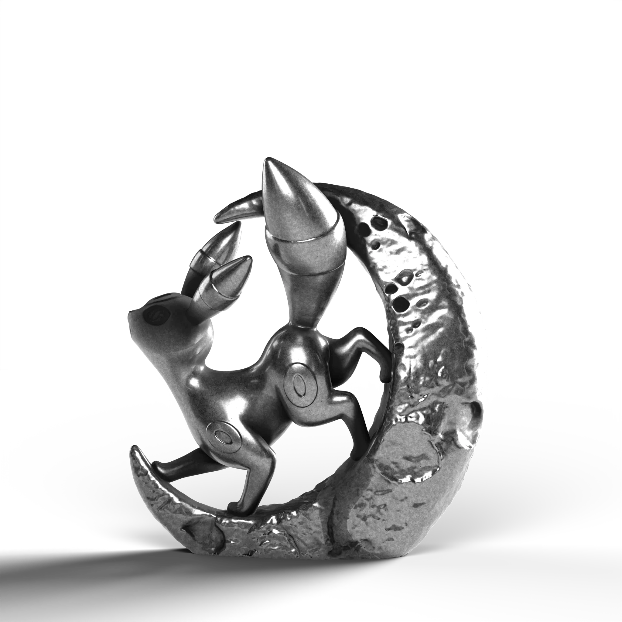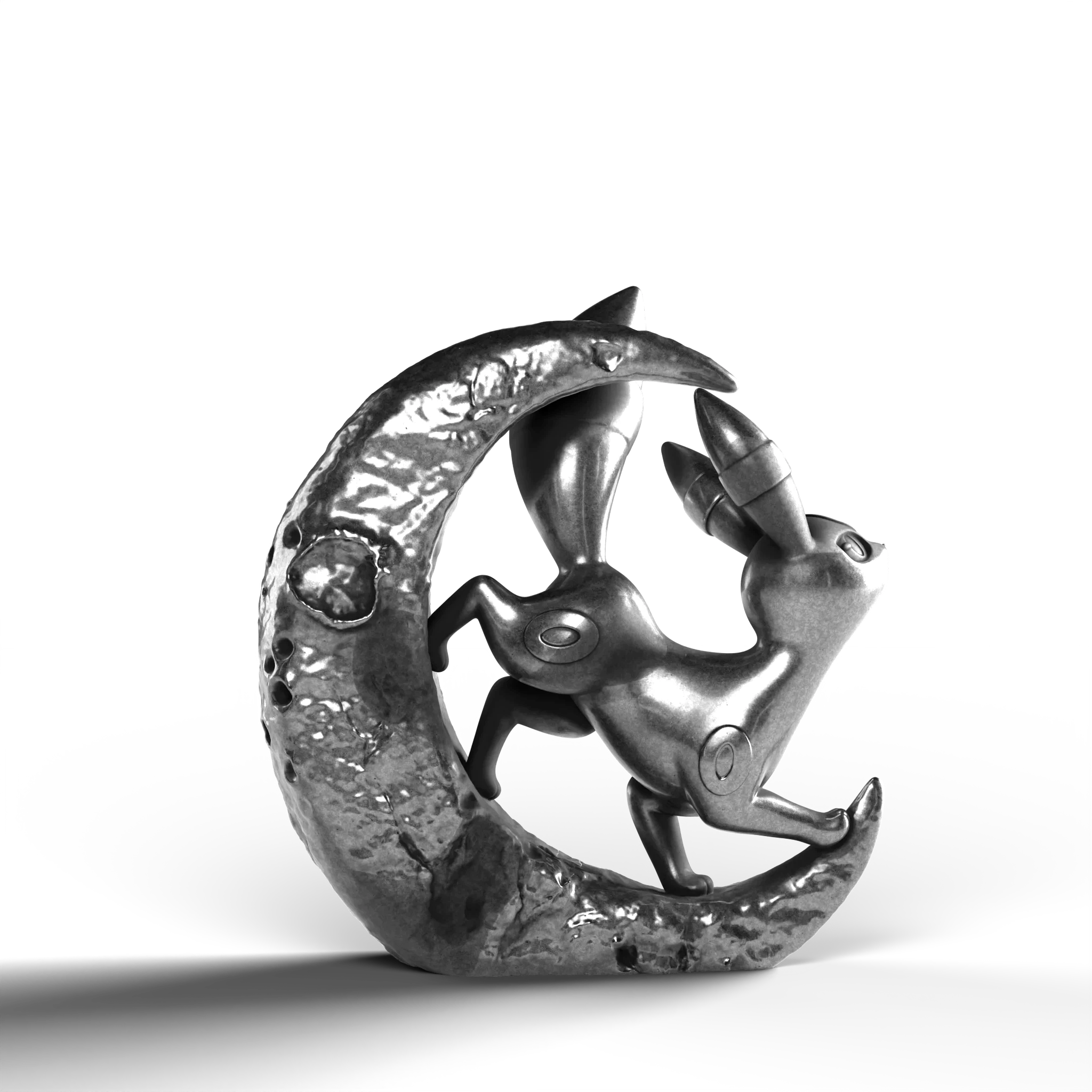 - Exquisite Craftsmanship: The Umbreon is depicted with smooth, flowing forms that highlight its sleek silhouette, while the textured surface of the crescent moon adds depth and intrigue.