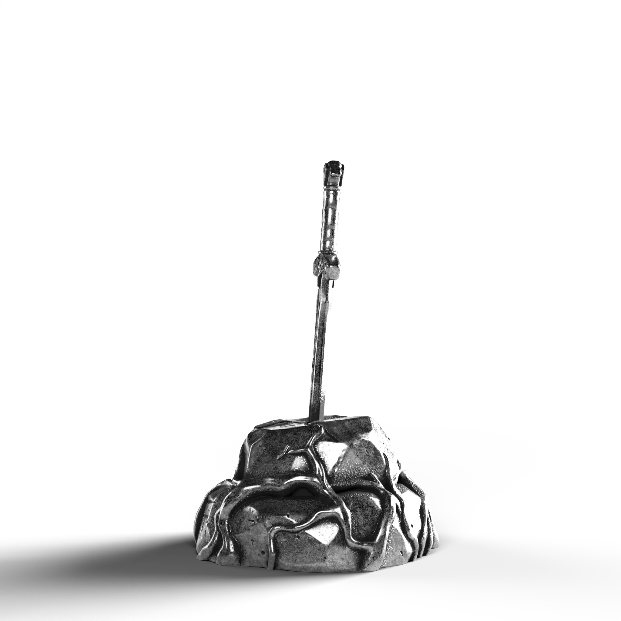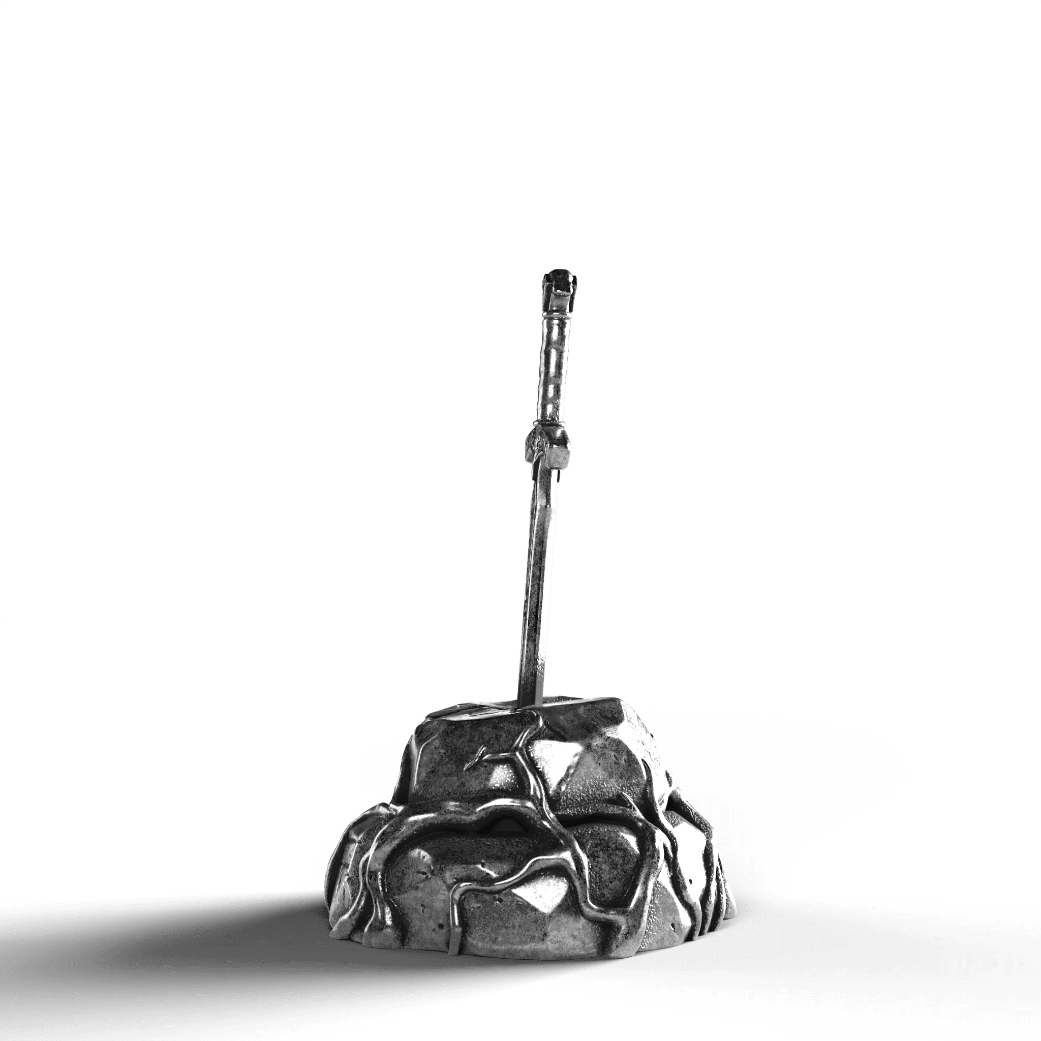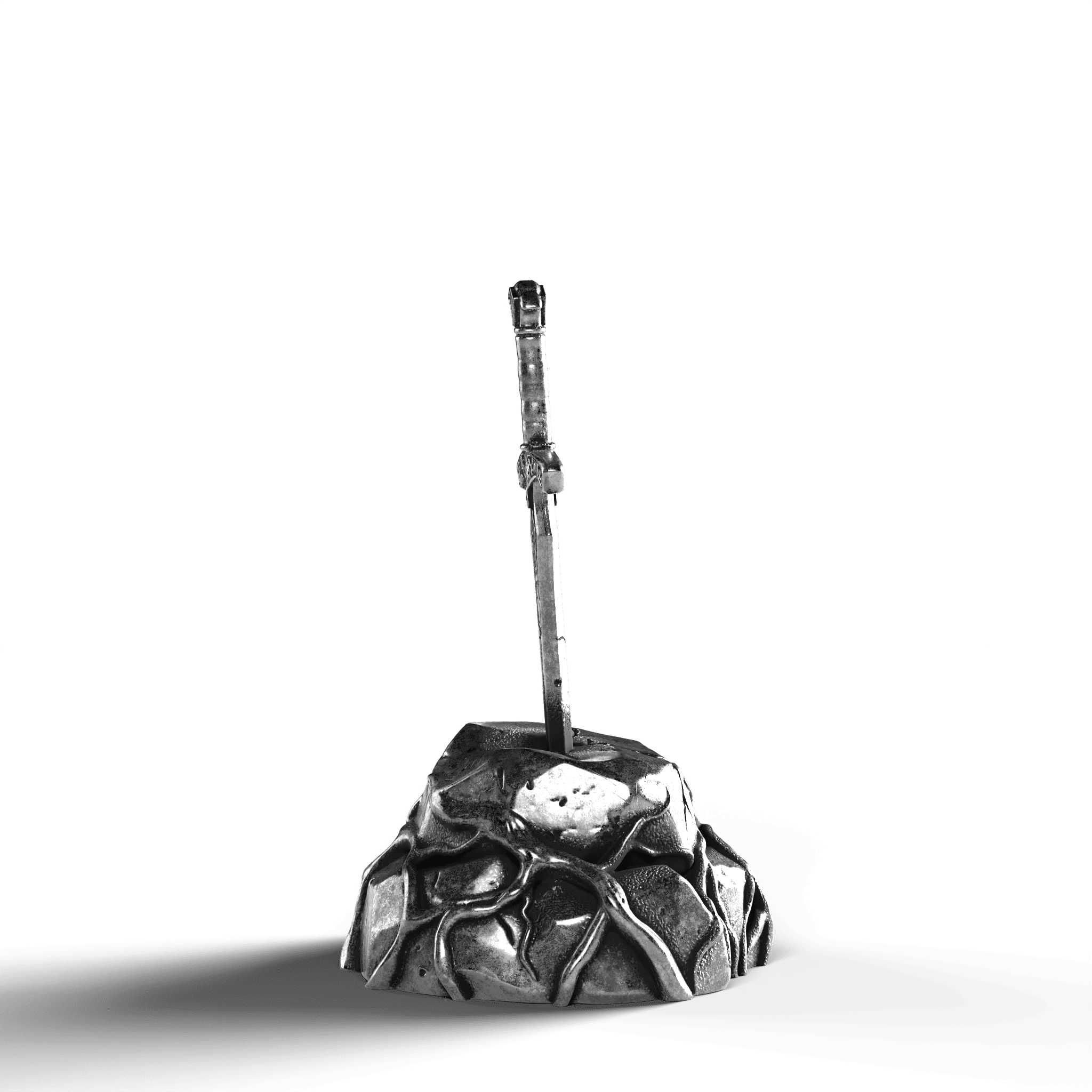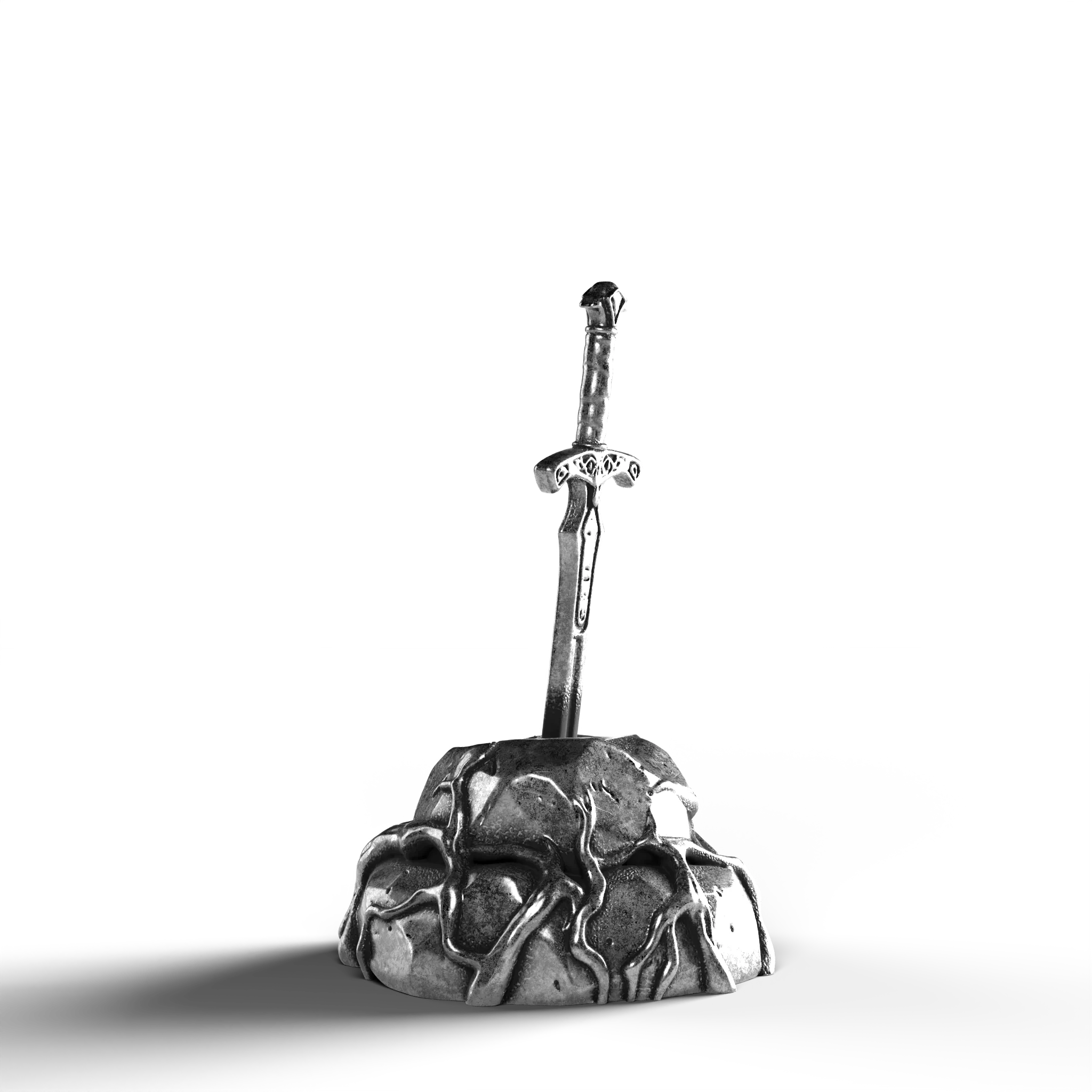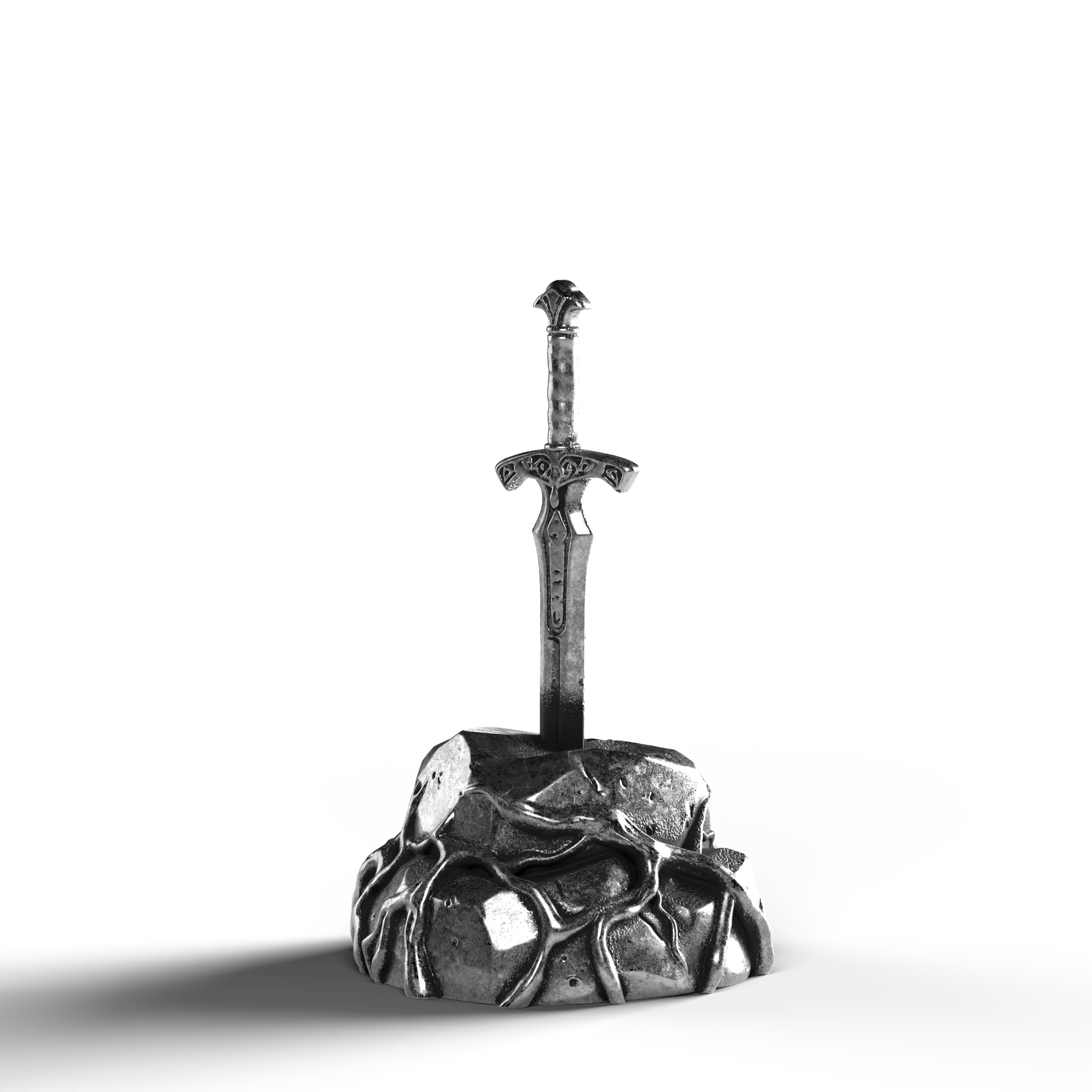 - Exquisite Craftsmanship: The sword's hilt is adorned with ornate engravings, each line and curve expertly rendered. The texture of the stone base is meticulously sculpted, offering a natural, rugged appearance.