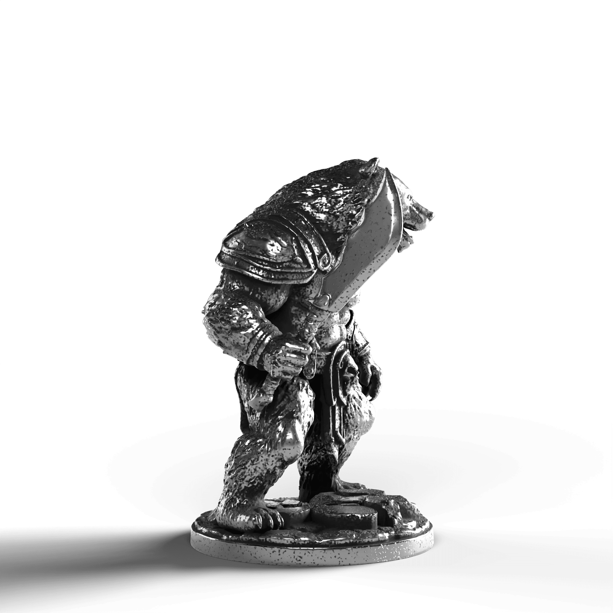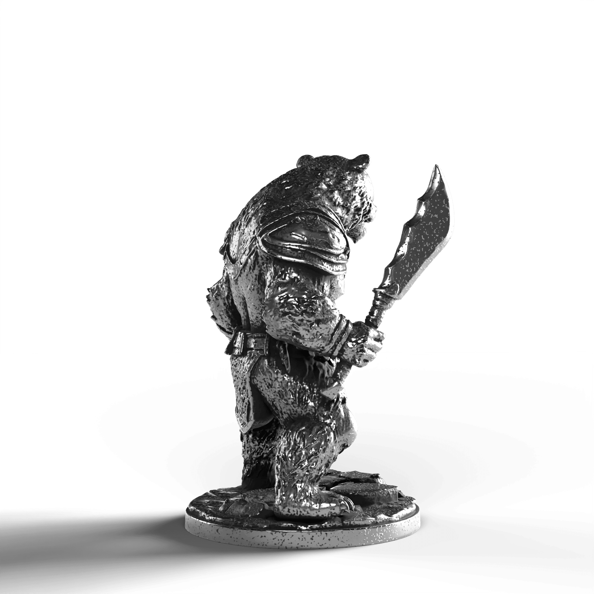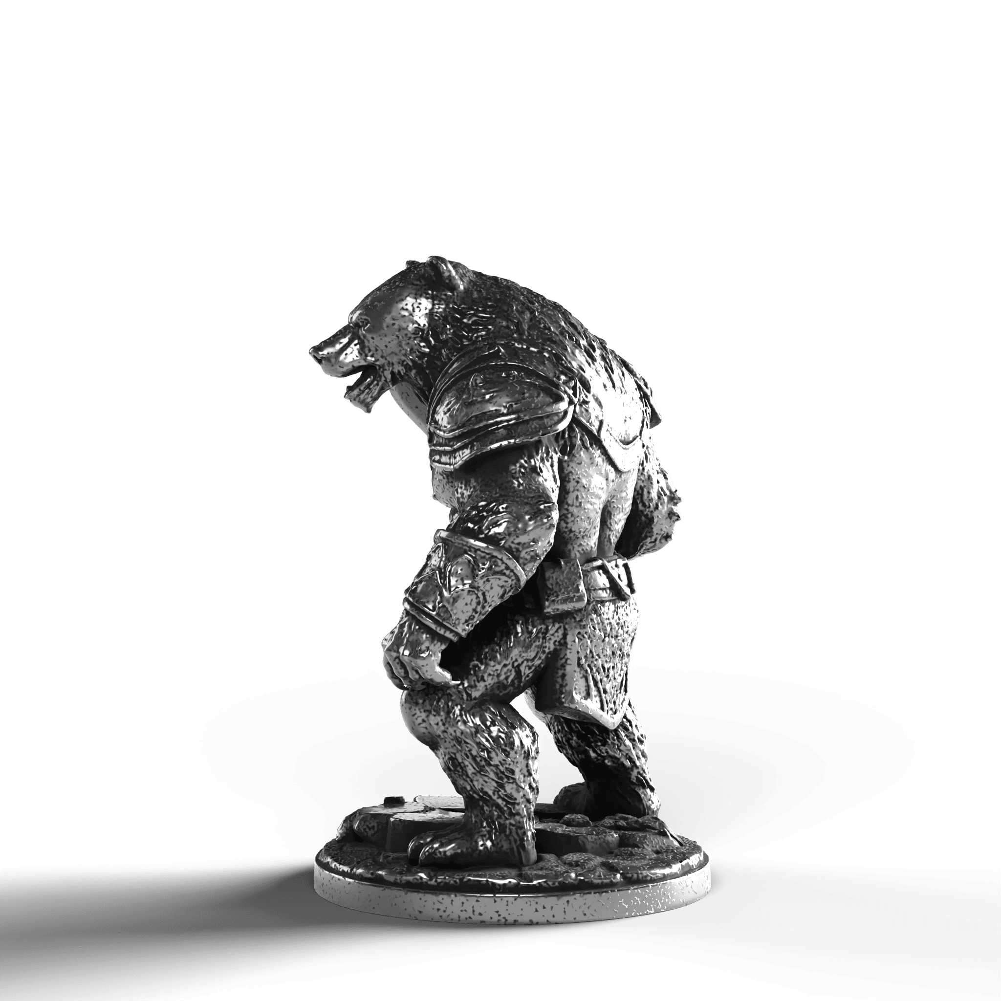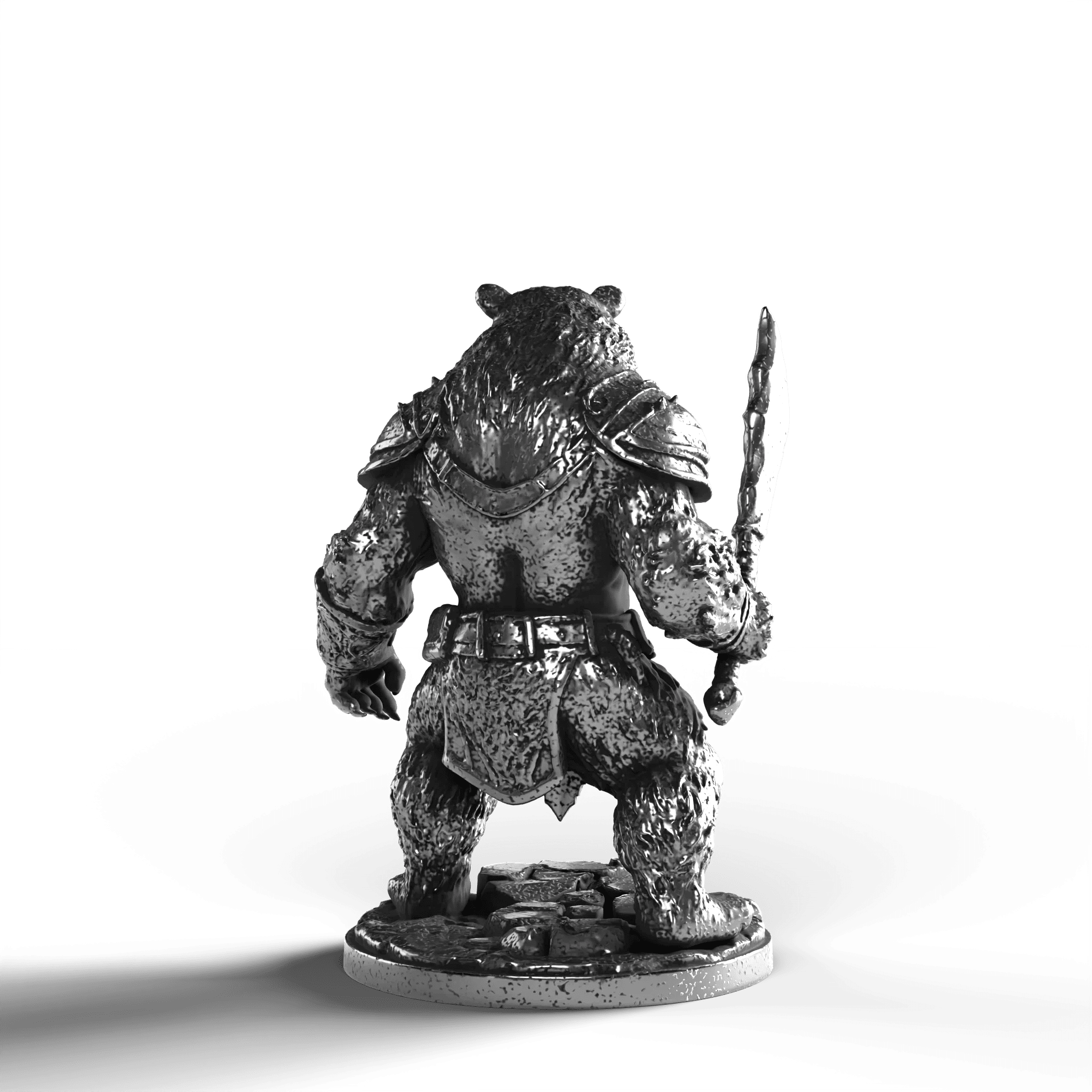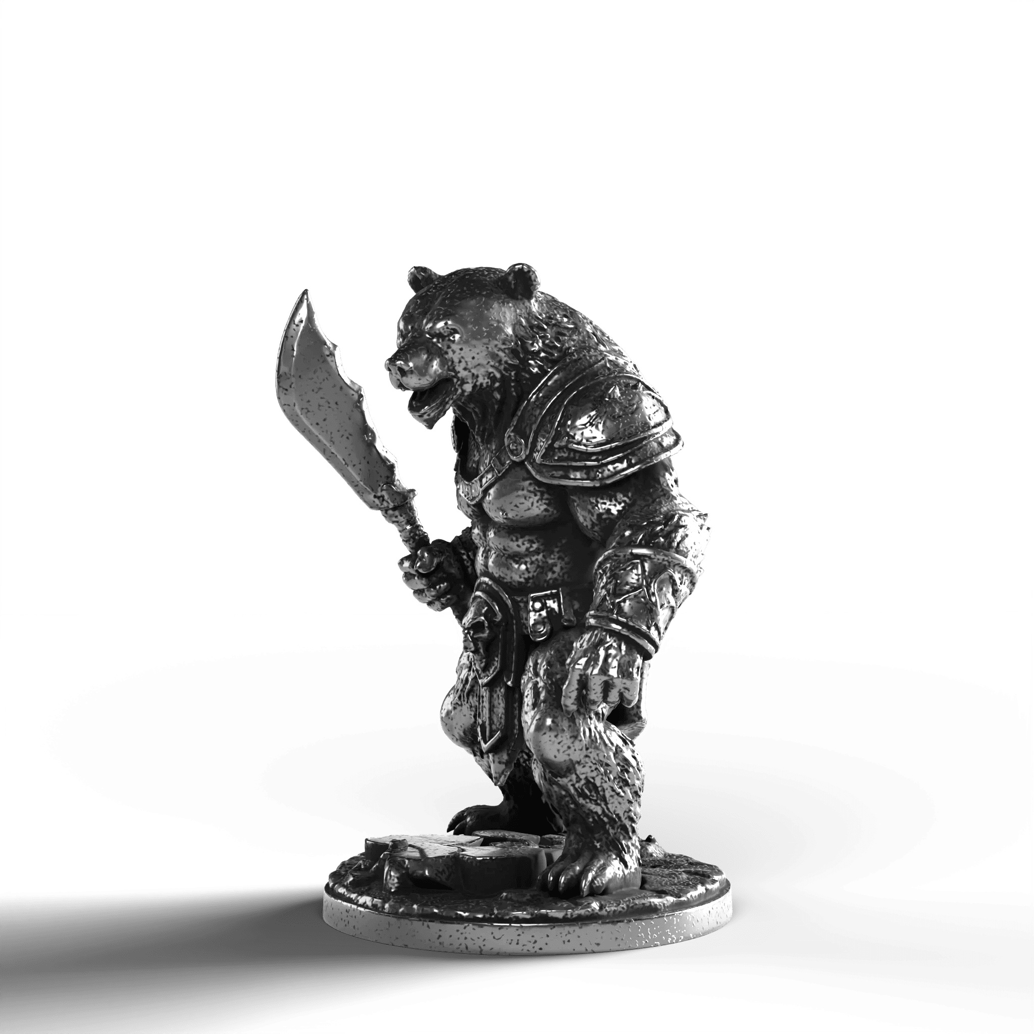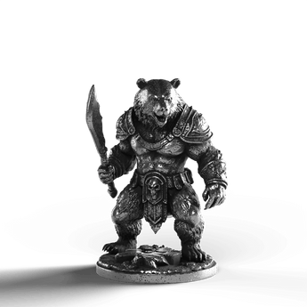 • Exquisite Craftsmanship: The Bear Warrior’s dynamic pose showcases defined muscle contours, each fur strand captured with precision. The intricately designed armor, complete with shoulder plates and ornate detailing, complements the warrior's fearsome expression. Clutching a mighty sword, the Bear Warrior stands with an indomitable presence.