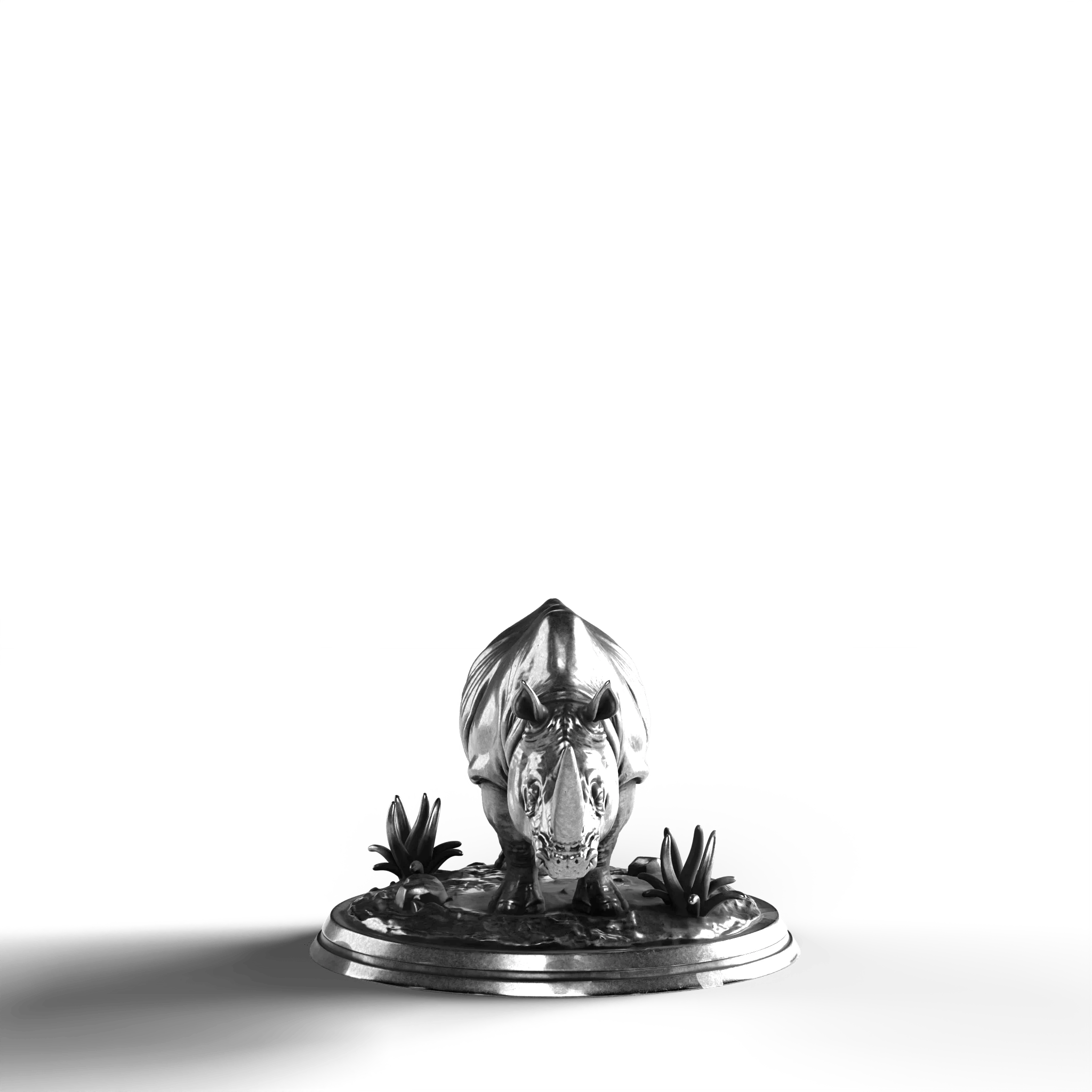 - Exquisite Craftsmanship: The statue showcases meticulously detailed skin folds and a robust, lifelike musculature, bringing the rhino's powerful stance to life. Its horn is crafted with precision, capturing the essence of this formidable animal.