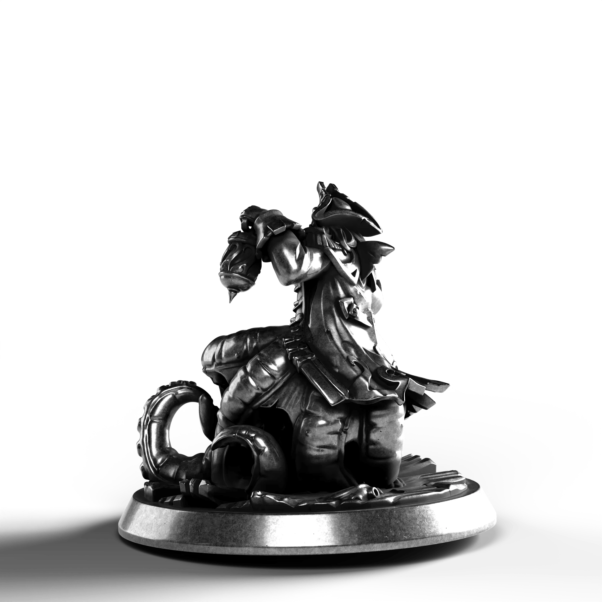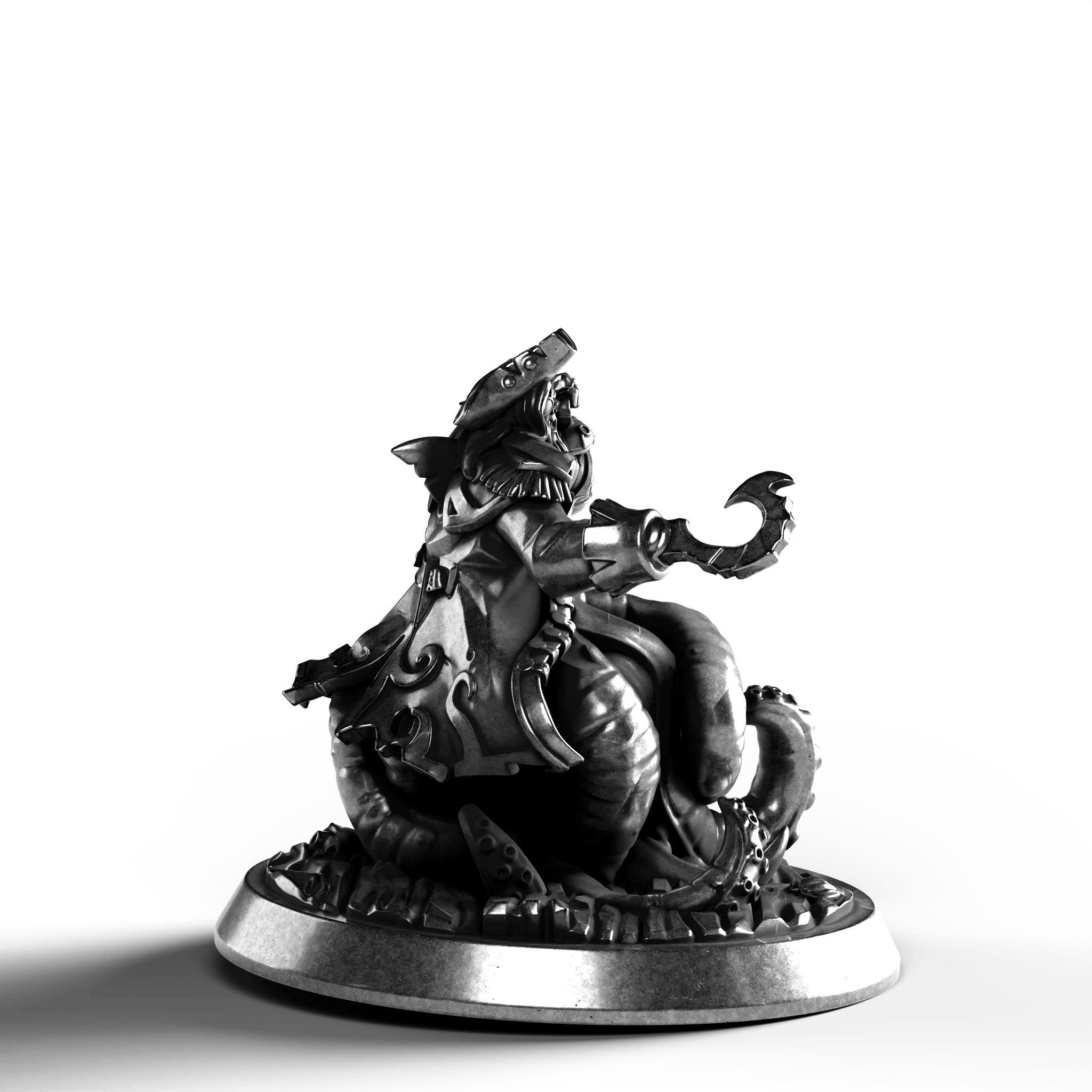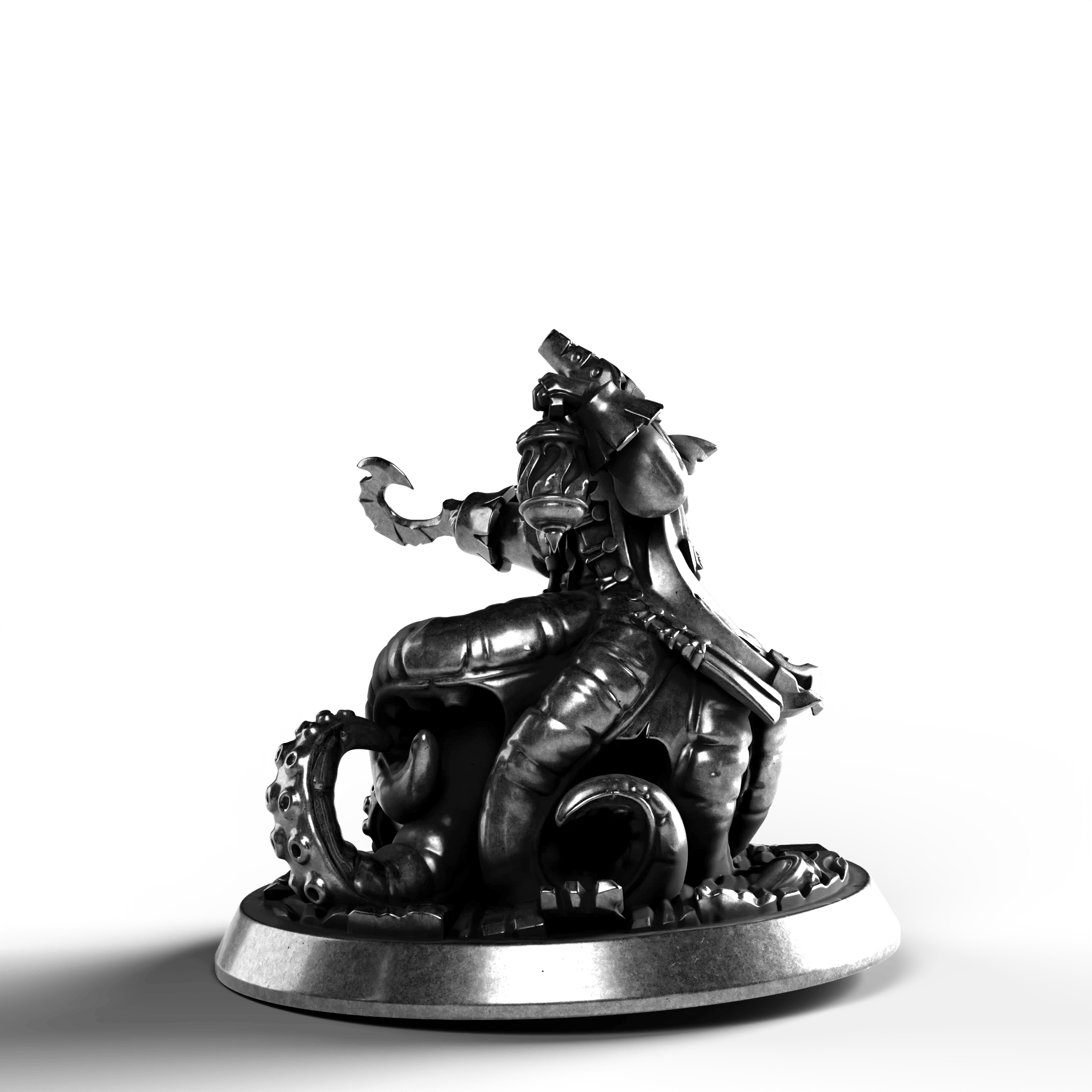 The Cursed Captain .999 Fine Silver Statue captures the aura of maritime legend with remarkable detail. This piece exudes a haunting allure, with the captain poised in a commanding gesture, his tentacle-like appendages writhing beneath him. The intricate textures bring to life the tales of the sea's mysterious depths, making this a compelling acquisition for any discerning collector.