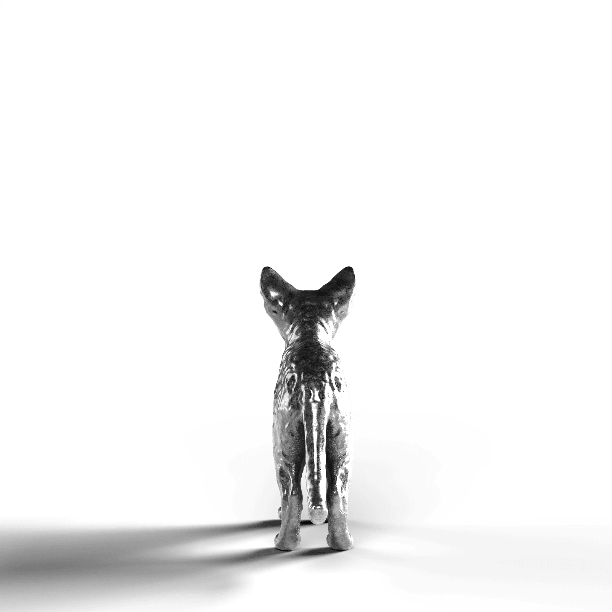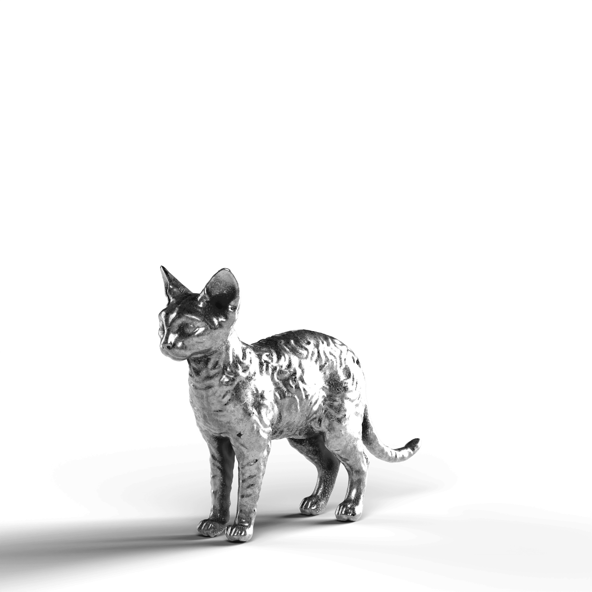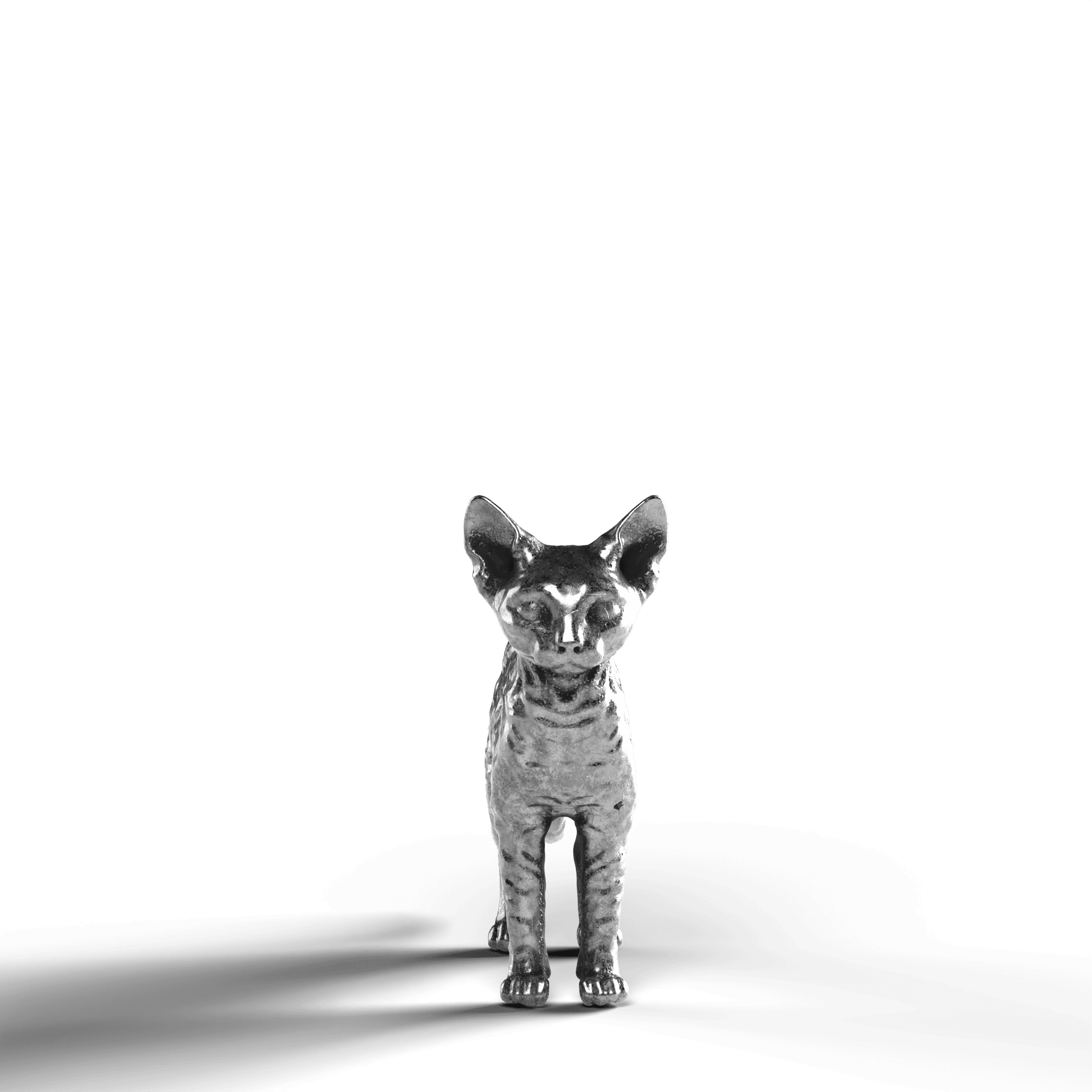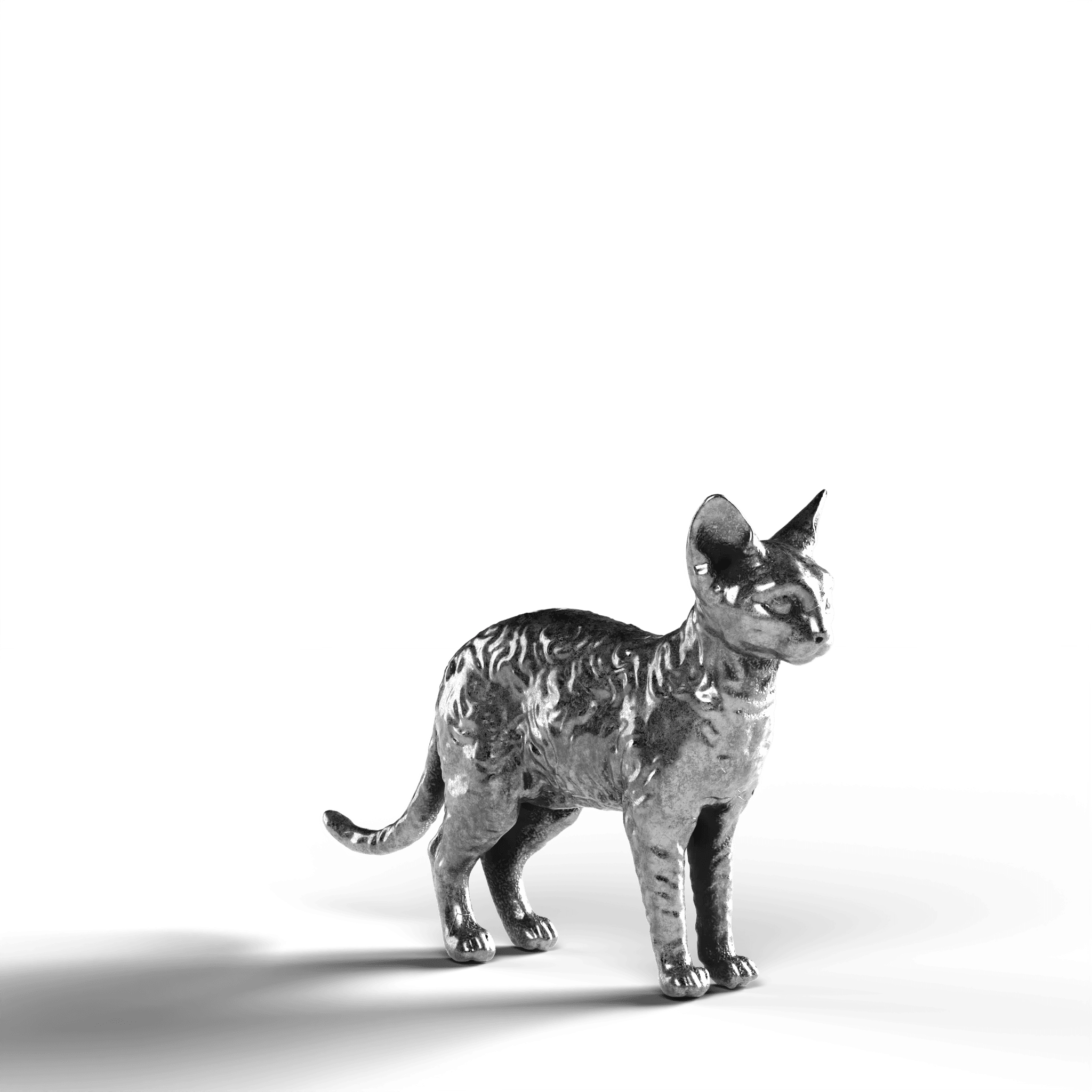 • Exquisite Craftsmanship: The statue showcases the Devon Rex’s distinctively large ears and curled coat with intricate detail. The lifelike texture of the fur contrasts with the sleekness of its silver surface, capturing the cat’s curious and attentive stance.