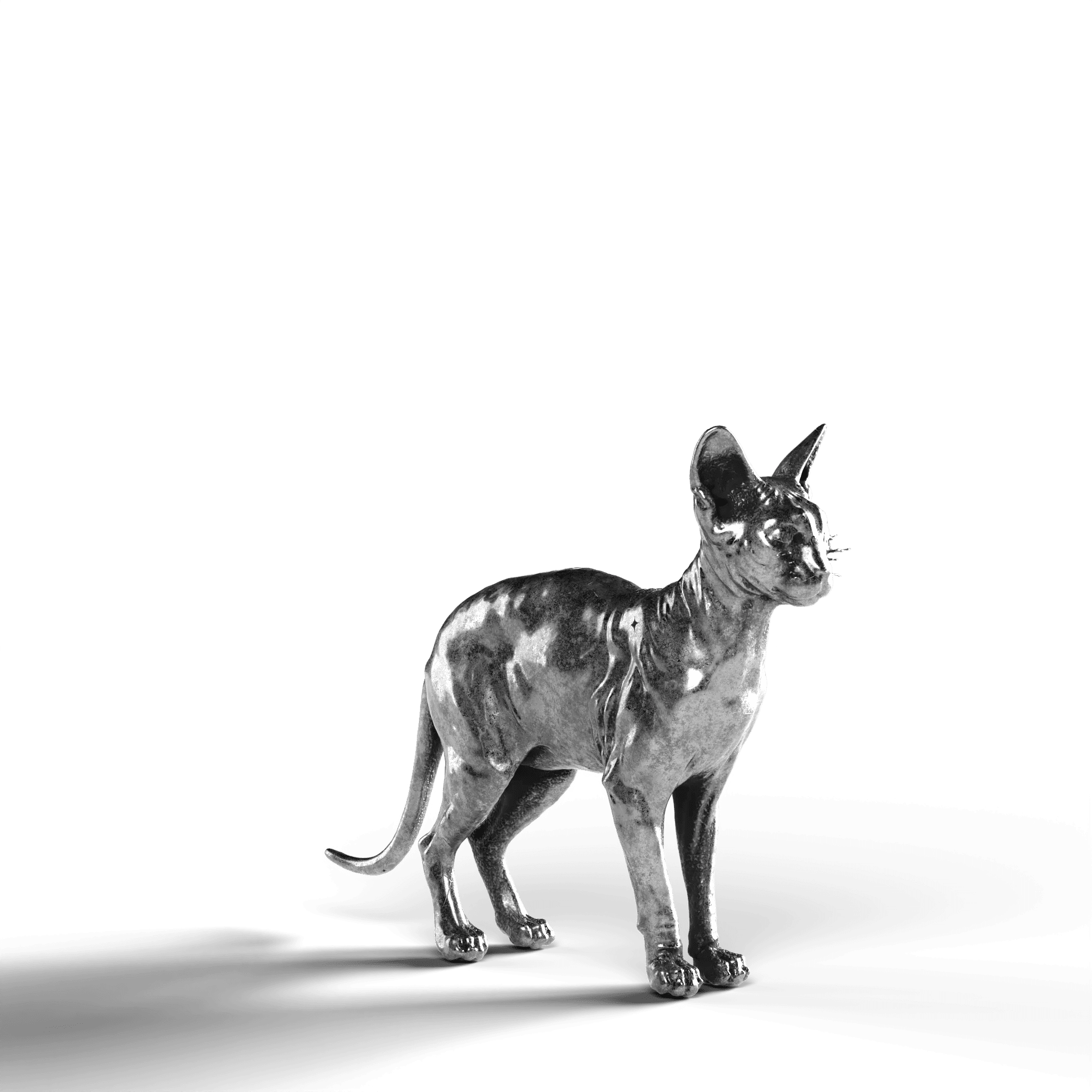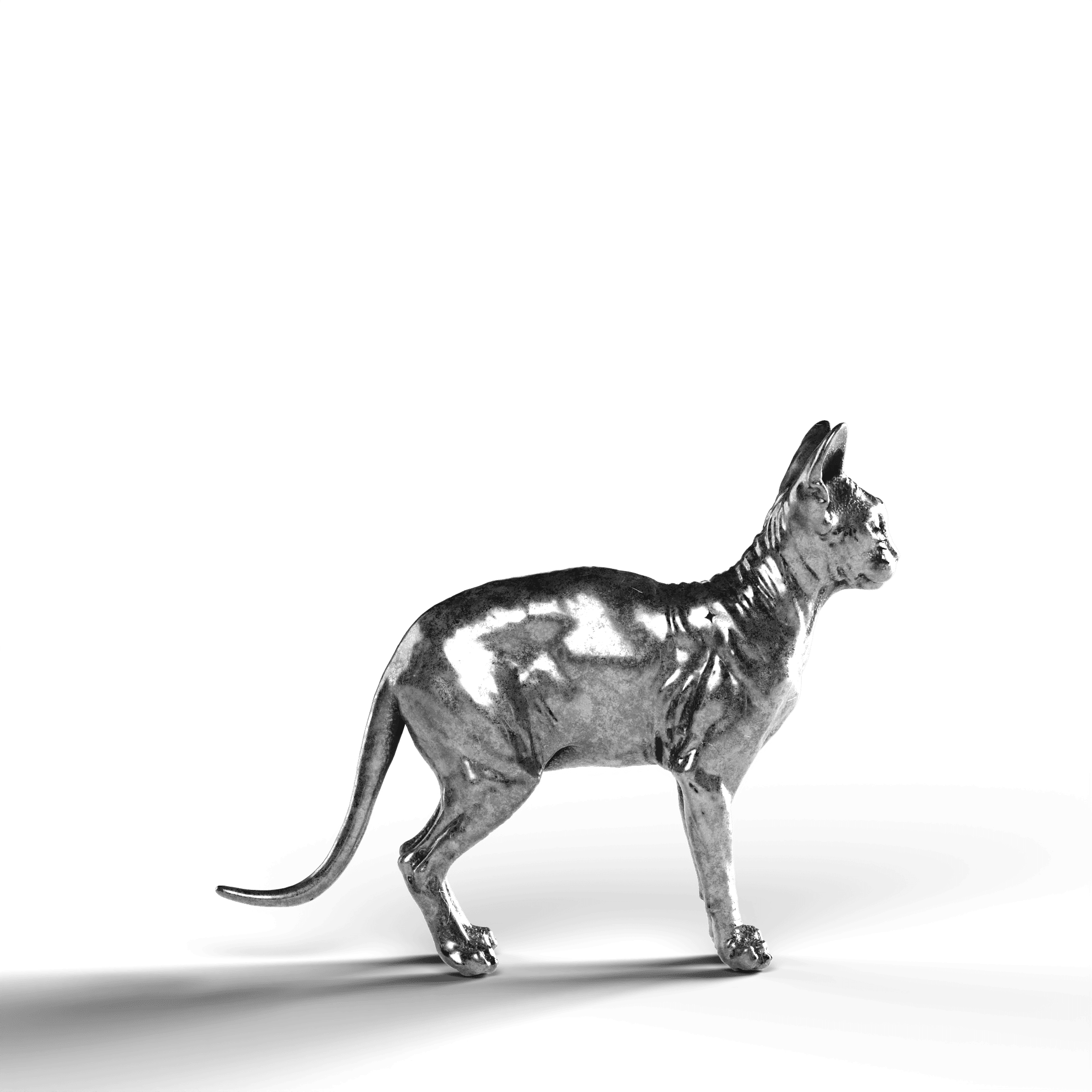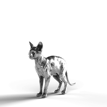- Exquisite Craftsmanship: The statue highlights the unique texture of the Sphynx's skin, with intricate muscle definition and the cat’s poised stance, bringing this enigmatic breed to life in fine silver.